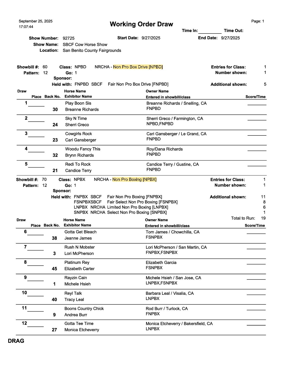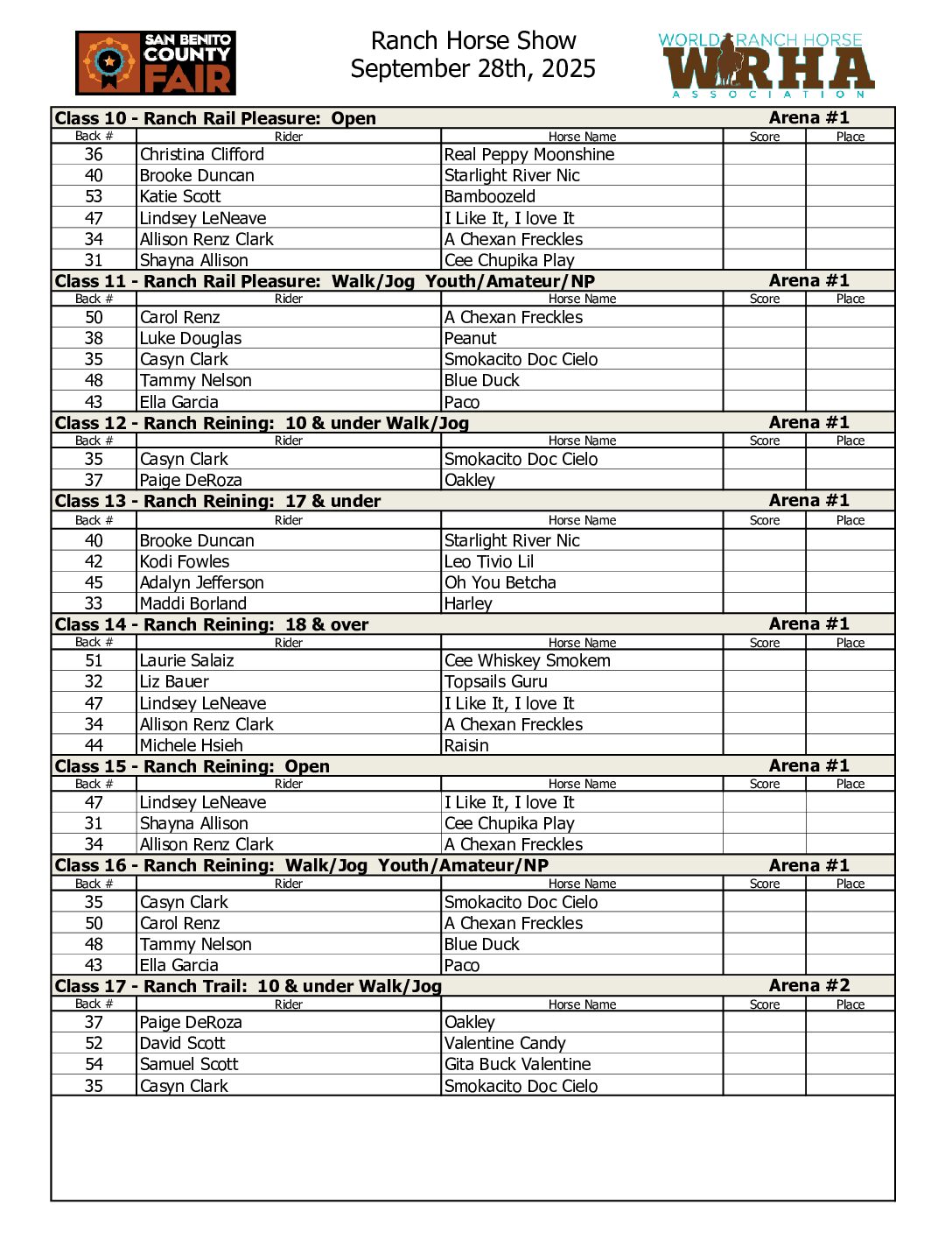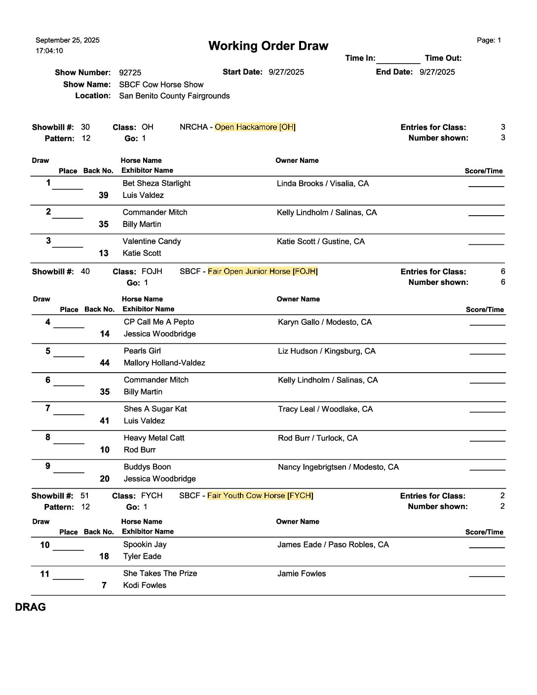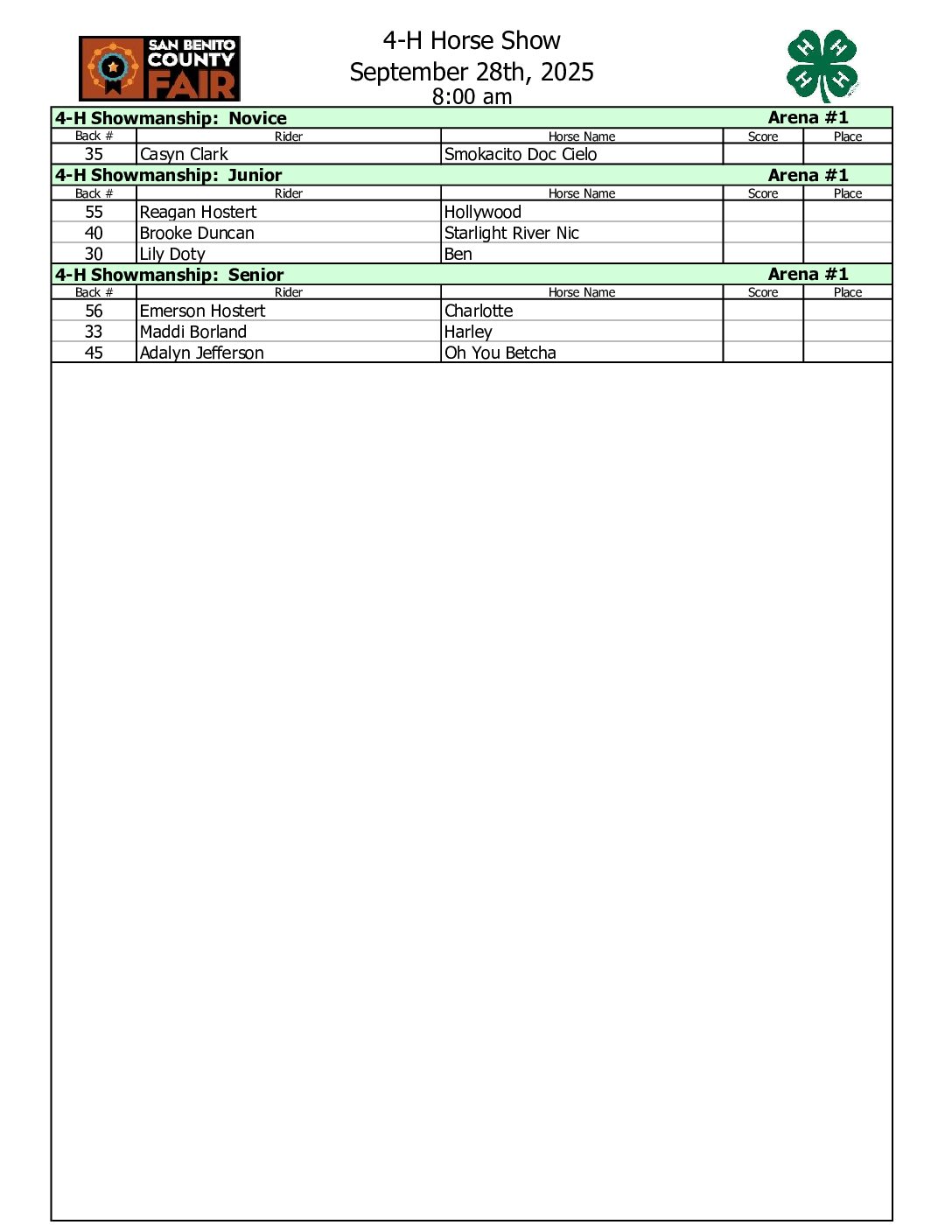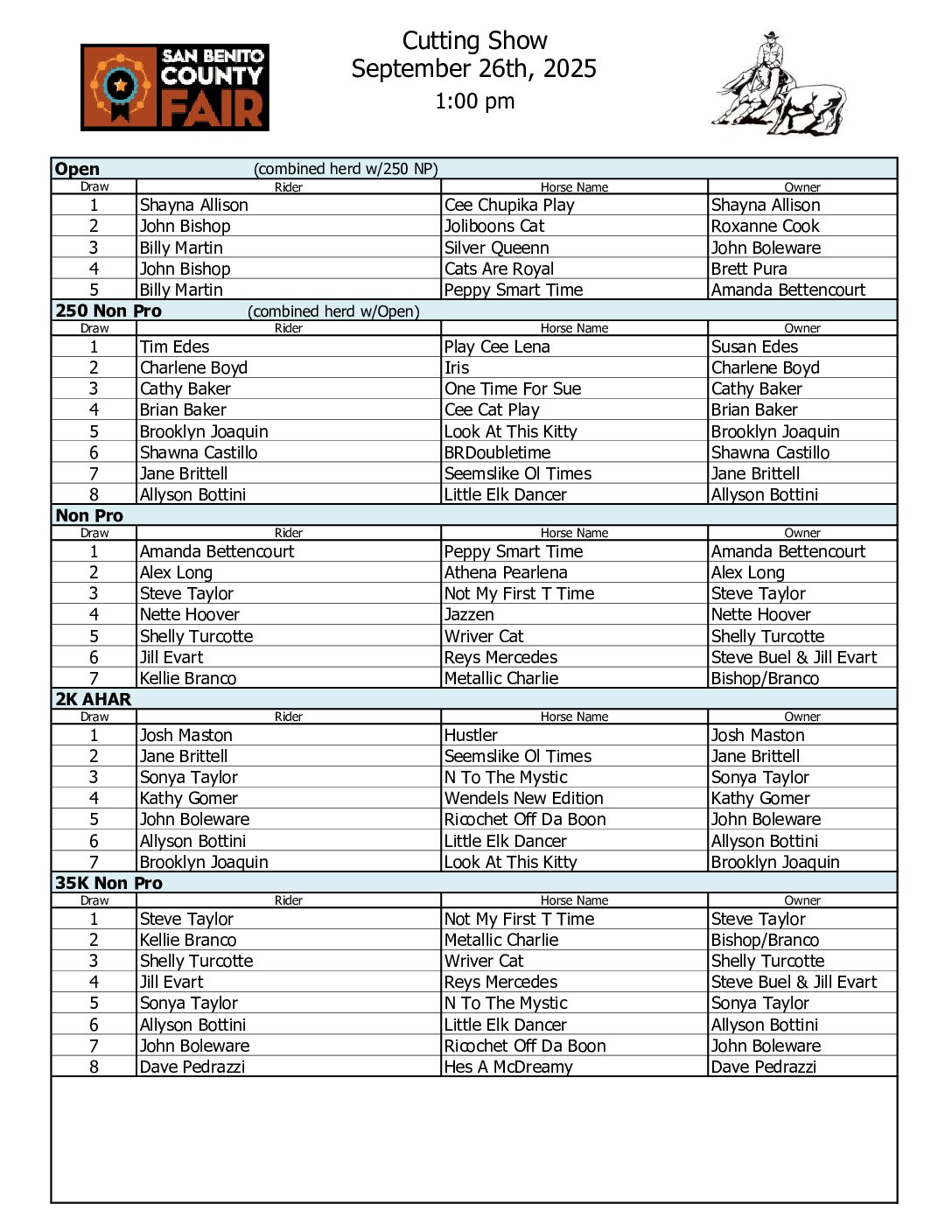 Cutting Show | September 26th | 1:00 pm Cow Horse Show | September 27th | 8:00 am Ranch Horse Show | September 28th | 8:00 am 4-H & FFA Horse Show | September 28th | 8:00am
