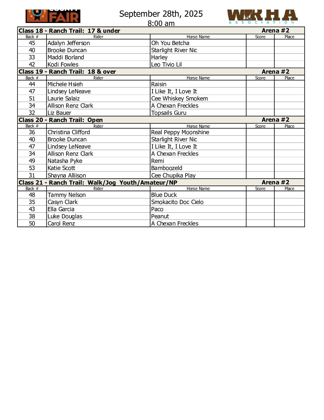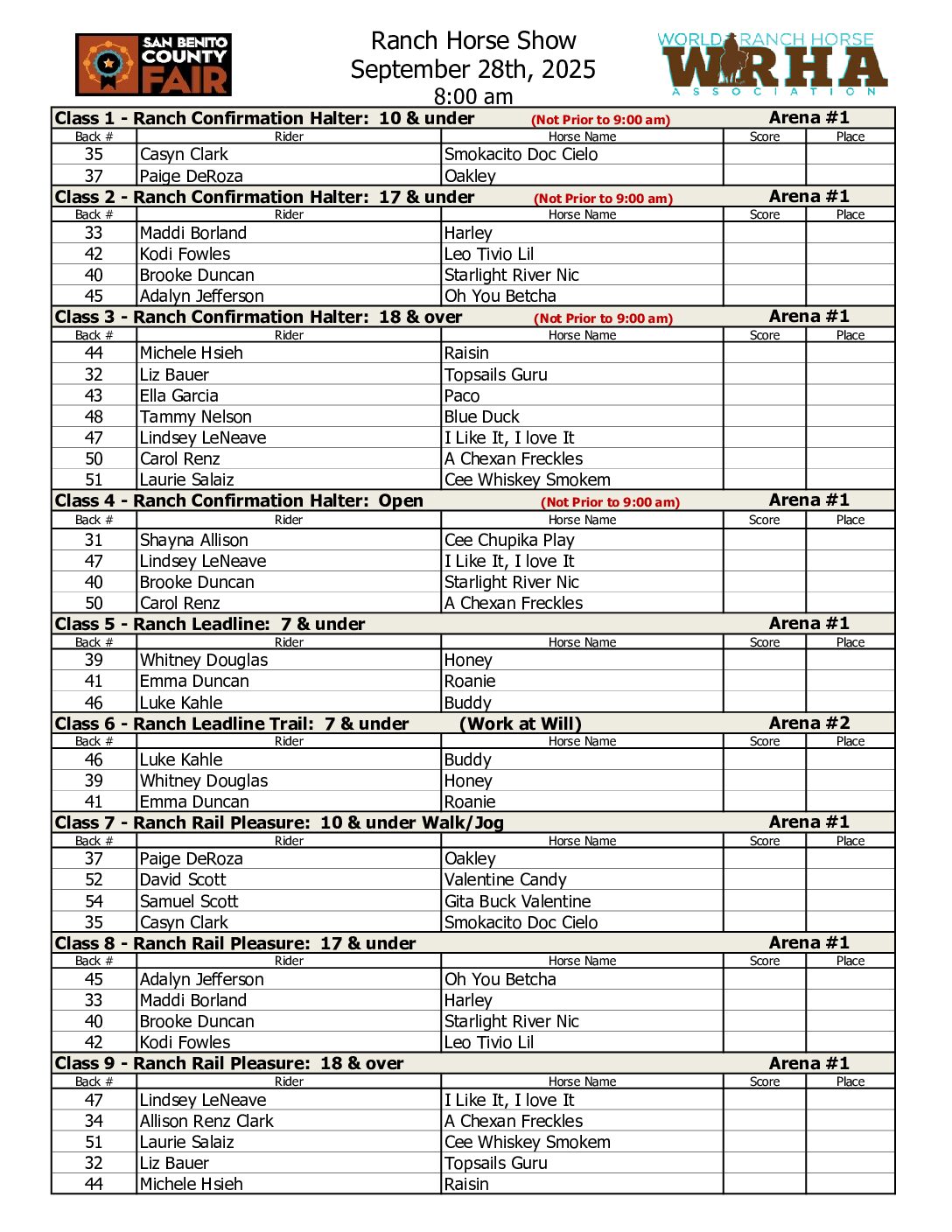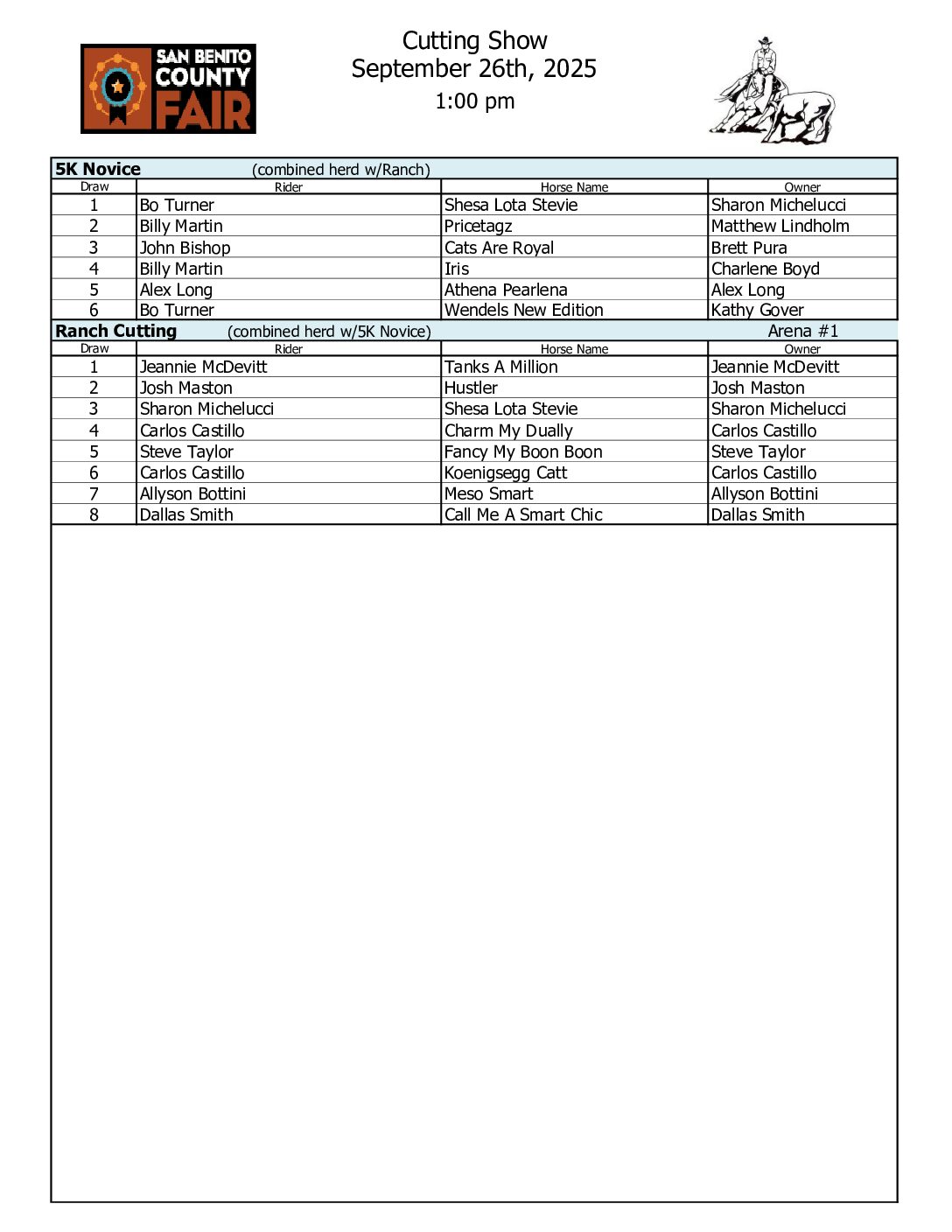 Cutting Show | September 26th | 1:00 pm Cow Horse Show | September 27th | 8:00 am Ranch Horse Show | September 28th | 8:00 am 4-H & FFA Horse Show | September 28th | 8:00am