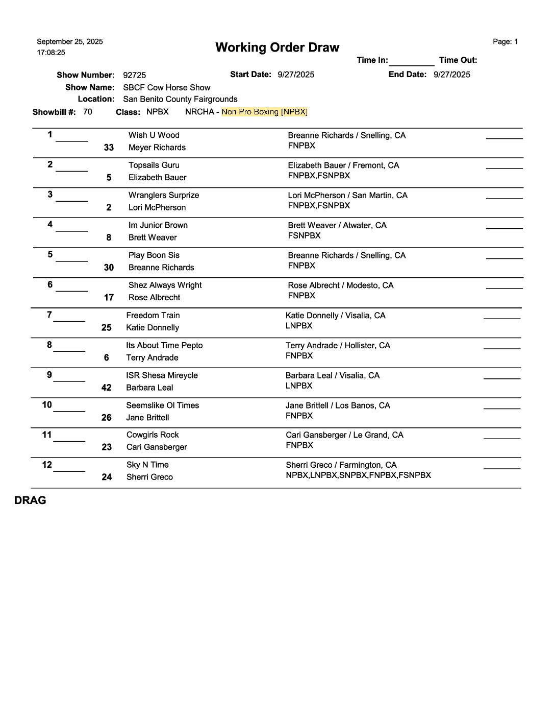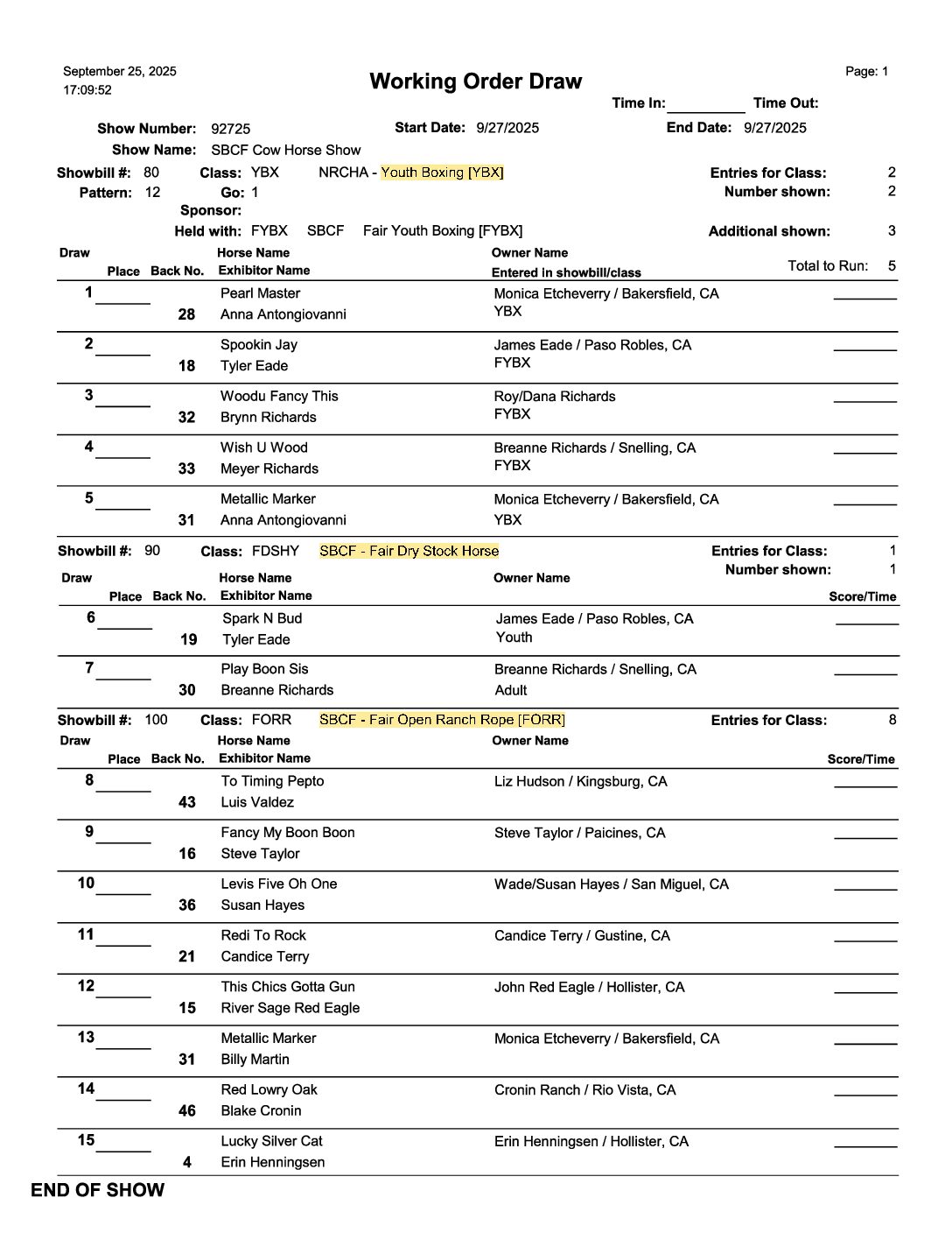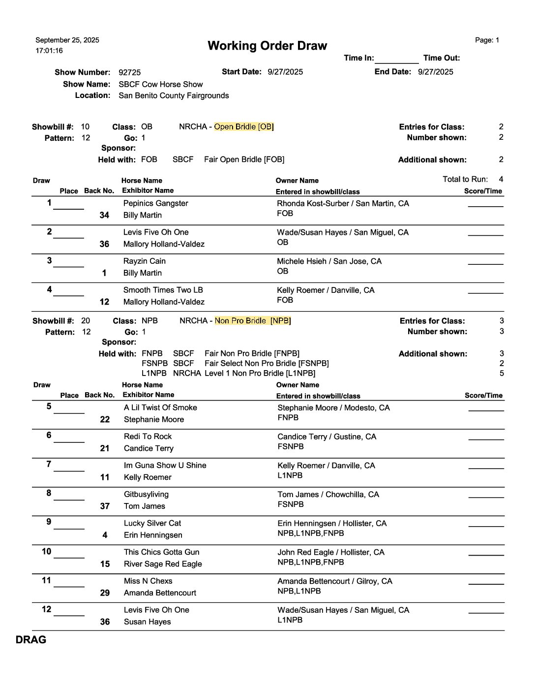 Cutting Show | September 26th | 1:00 pm Cow Horse Show | September 27th | 8:00 am Ranch Horse Show | September 28th | 8:00 am 4-H & FFA Horse Show | September 28th | 8:00am